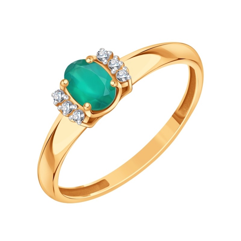Rotgoldring 585 Achat Zirkonia. Goldring aus 585er russischem