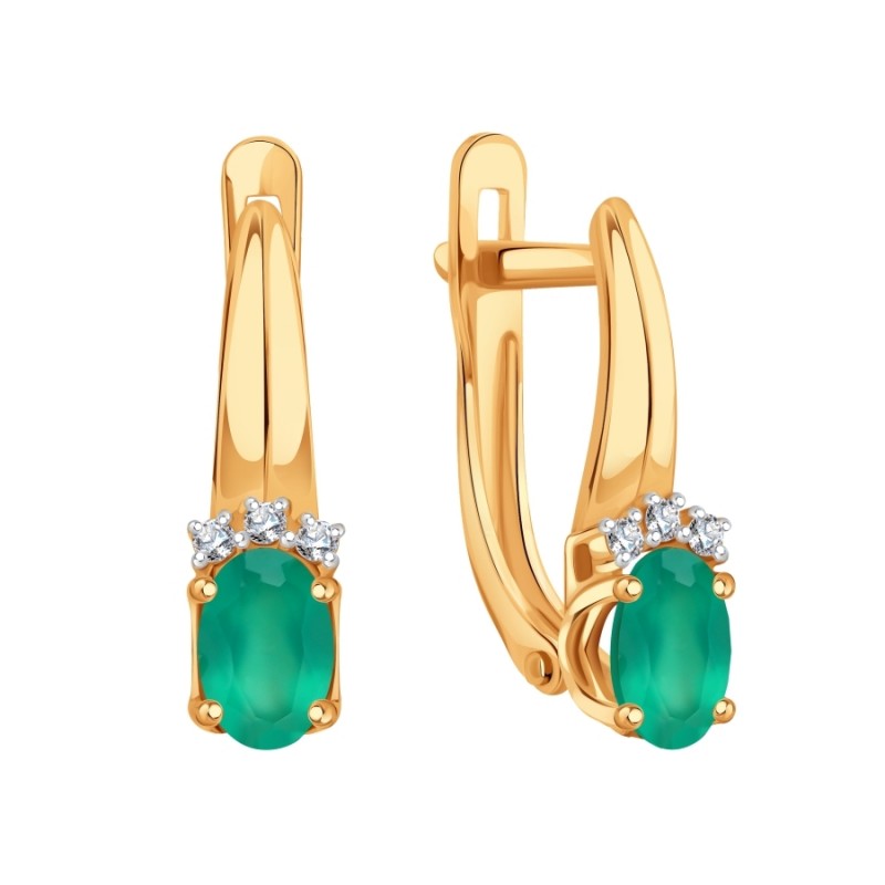 Rotgold 585 Achat Zirkonia. Zarte Goldohrringe aus rotem russischem Gold 585, verziert mit grünem Achat und Zirkonia! Diese Ohrringe strahlen Chic und Unwiderstehlichkeit aus – Sie werden damit sowohl im Alltag als auch in festlicher Kleidung attraktiv sein!