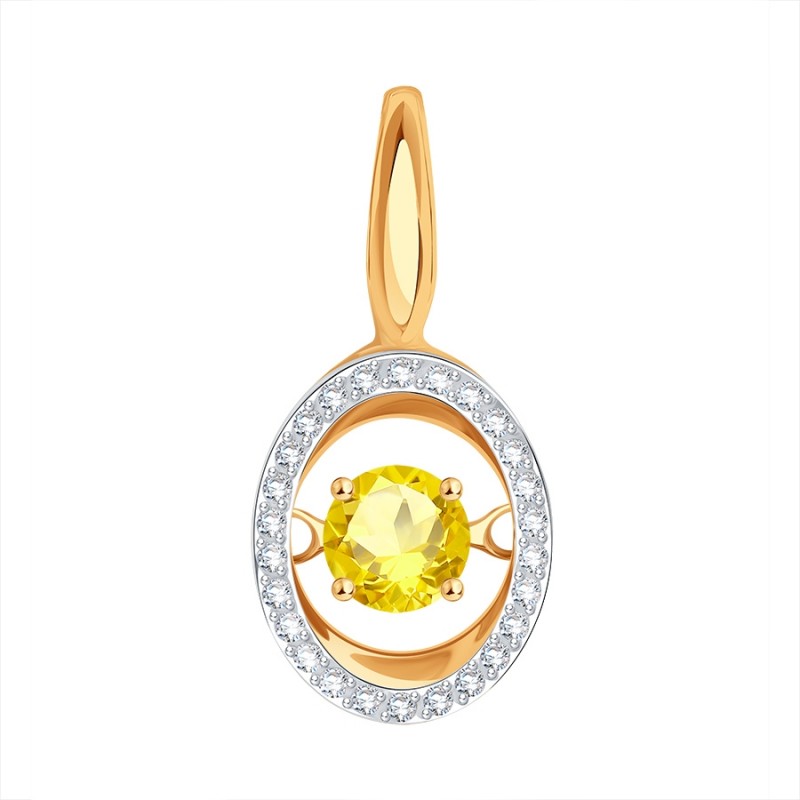 Goldanhänger aus russischem Gold 585 Dancing Citrin Zirkonia. Zarter Anhänger aus 14-karätigem