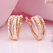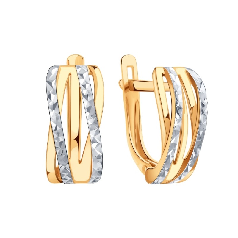 Goldohrringe Russisches Gold 585 mit diamantgeschliffenen Weißgoldakzenten. Wenn Sie bei Ihrer Begleiterin ihre Weiblichkeit, Anmut, ihr Lächeln und ihre Schönheit betonen möchten, dann ist ein solches Geschenk genau das Richtige für Sie.