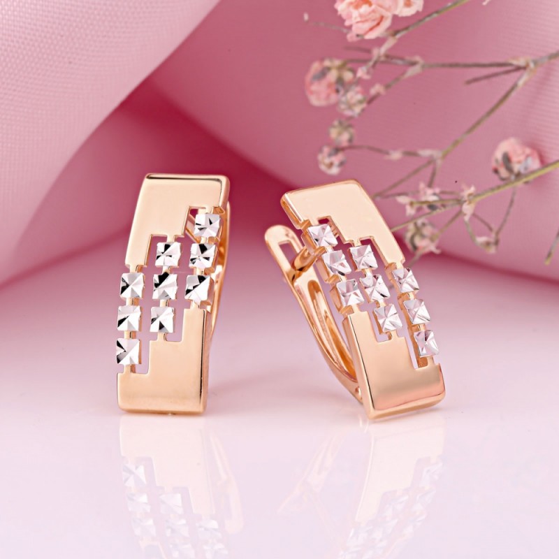 Rotgold liegt in seiner Stärke, Widerstandsfähigkeit gegen Lasten und Haltbarkeit. Diese Vorteile ermöglichen es Ihnen, leichten durchbrochenen Schmuck zu kreieren, ohne befürchten zu müssen, dass das Material schnell seine Form verliert oder geätzt wird.Schmuck aus rotem Material sieht toll aus, auch wenn er nicht von Edelsteinen instruiert wird. Solche Produkte eignen sich für jede Art von Haut, schmücken eine Frau jeden Alters und geben den Anschein von Raffinesse und Eleganz.