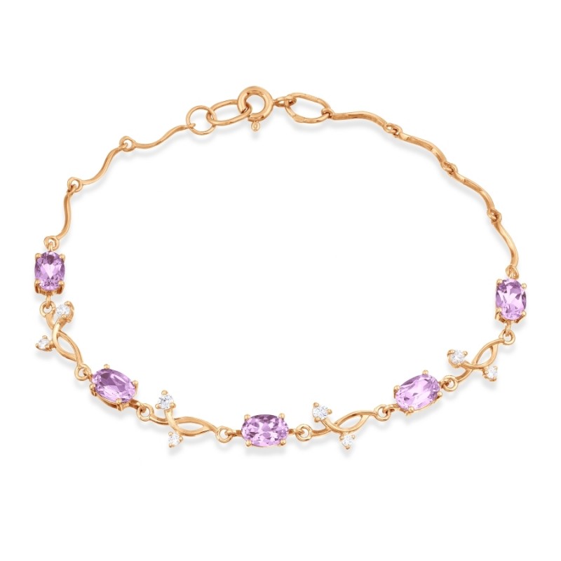 Goldarmband Russisches Gold 585 in Deutschland Amethyst Zirkonia. Zartes und romantisches Armband aus 14 Karat