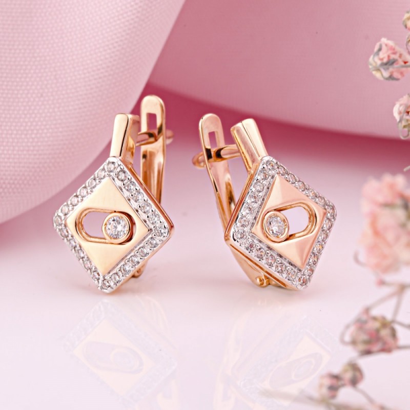 Goldohrringe Russisches Gold 585 Zirkonia. Feminine, elegante Ohrringe aus 585er