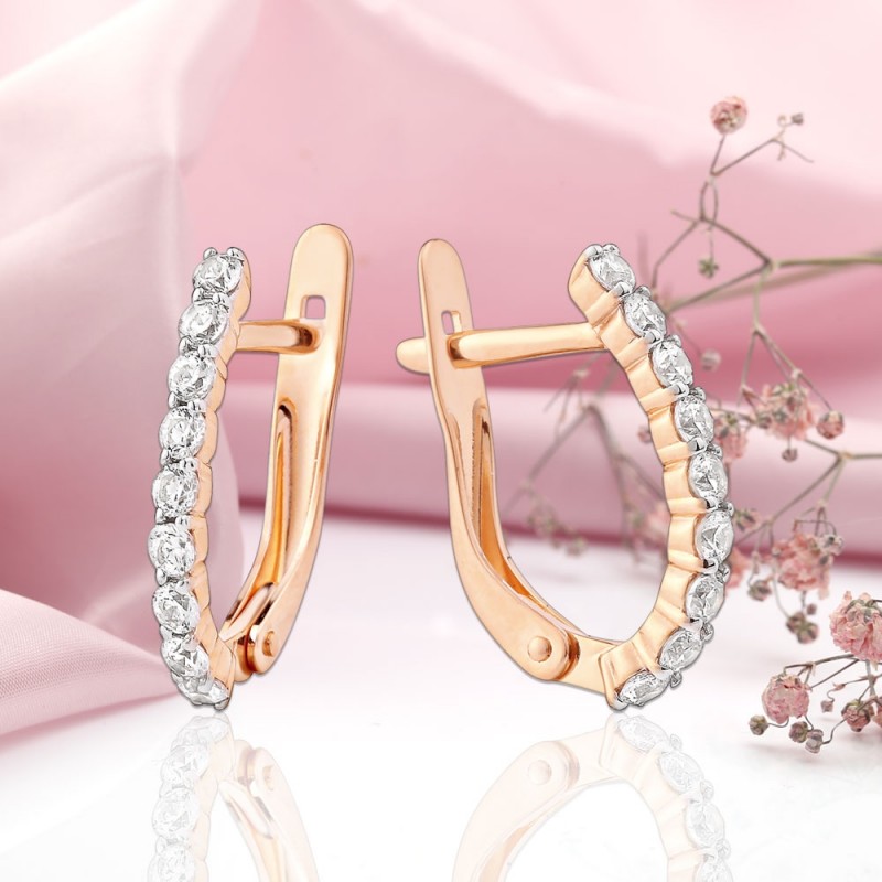 Rotgold, verziert mit funkelnden Zirkonia auf Weißgoldhintergrund. Es wird Ihre Eleganz und Weiblichkeit hervorheben und bewundernde Blicke auf sich ziehen.