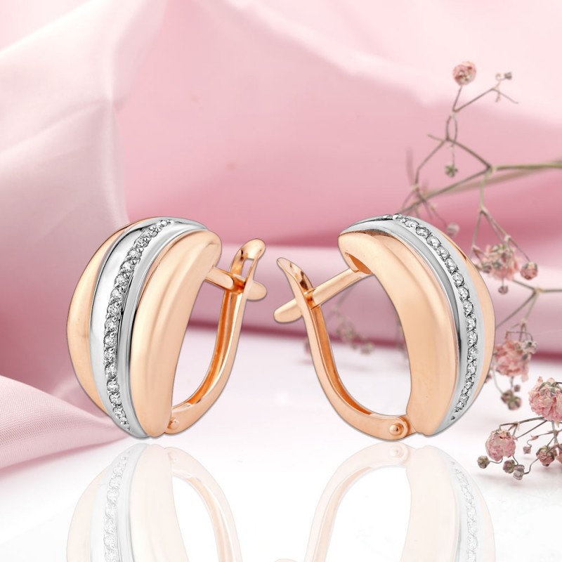 Rotgold, verziert mit funkelnden Zirkonia auf Weißgoldhintergrund. Es wird Ihre Eleganz und Weiblichkeit hervorheben und bewundernde Blicke auf sich ziehen.