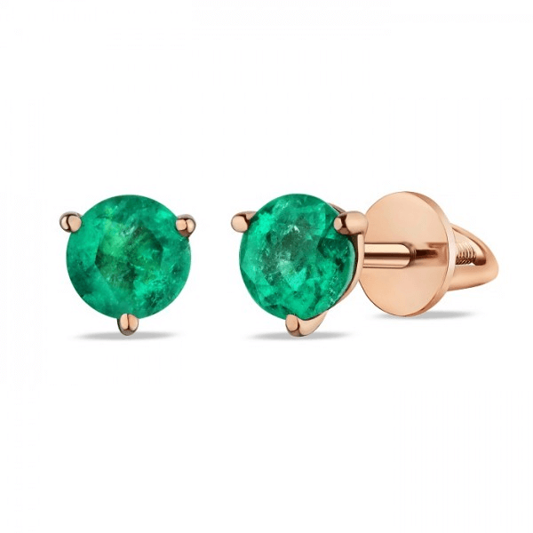 Miniatur-Ohrstecker in Rotgold mit Smaragden.