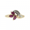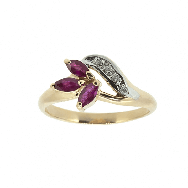 Ring aus Rotgold mit Diamanten und Rubinen in Form von Blütenblättern.