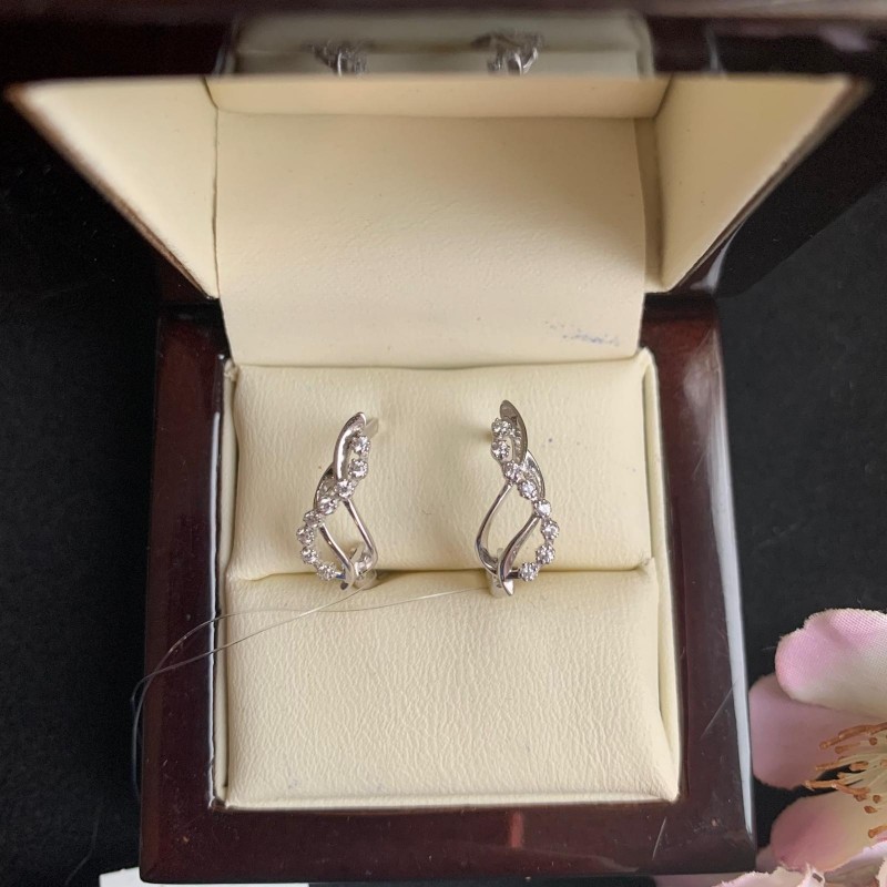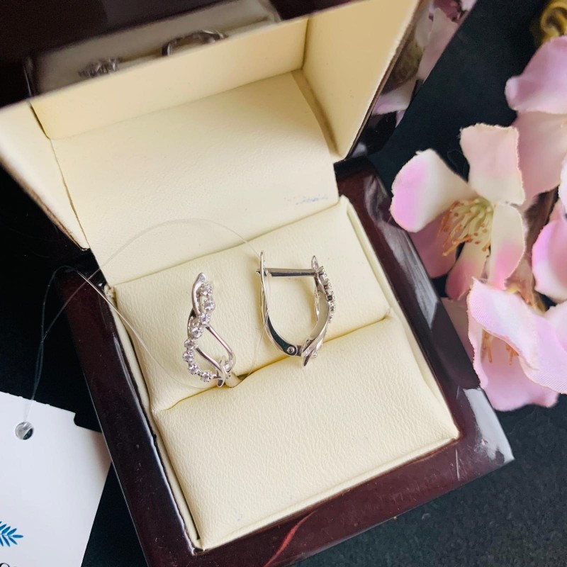Goldohrringe Weißgold 585 Zirkonia. Feminine, elegante Ohrringe aus 585er Weißgold, verziert mit funkelnden Zirkonia. Es wird Ihre Eleganz und Weiblichkeit hervorheben und bewundernde Blicke auf sich ziehen.