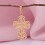 Rotgold, verziert mit einem Kruzifix aus 585-er Weißgold. Auf der Rückseite ist das Gebet eingraviert: „Rette und bewahre.“