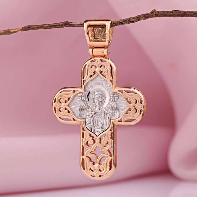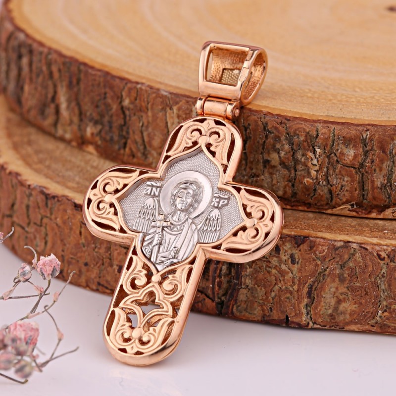 Rotgold, verziert mit einem doppelseitigen Bild des Heiligen Engels Gottes aus 585-karätigem Weißgold.
