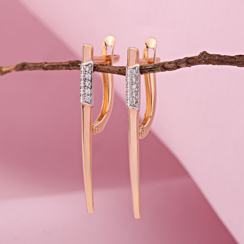 Goldohrringe aus 585er Russisches Gold Zirkonia. Feminine, elegante Ohrringe aus 585er