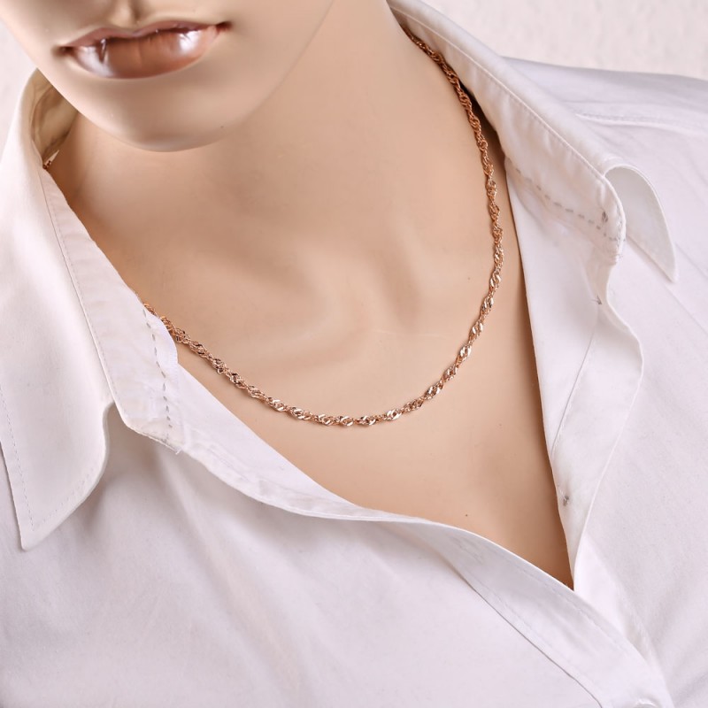 Singapurkette ist eine bestimmte Kettenart, die durch eine besonders filigrane und hochwertige Verarbeitung besticht. Sie zählt zu den aufwändigsten und hochwertigsten Macharten einer Kette, weshalb sie auch häufig ohne Anhänger getragen wird.Was die Singapurkette so exklusiv macht, ist die enge und verschlungene Verknüpfung ihrer Kettenglieder. Dabei sind die feinen Panzerglieder zusätzlich in einer gedrehten Form vorhanden, wodurch dieses Kettenmodell einen besonderen Glanz durch Lichtbrechung besitzt. Die feingliedrige Ausarbeitung der eng ineinandergreifenden Kettenelemente verleiht der Singapurkette ihren femininen Charakter und macht sie zu einem Schmuckstück, das als Pulloverkette auch auf der Kleidung getragen werden kann.