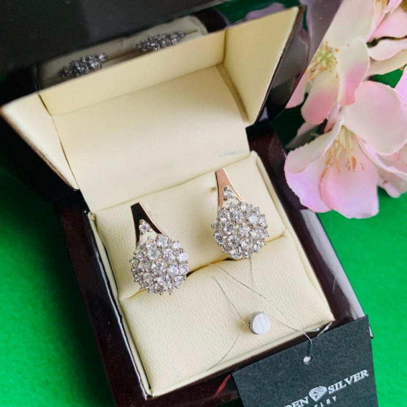 Купить в Германии серьги из серебра и золота Фианиты. Серебряные серьги с золотом.