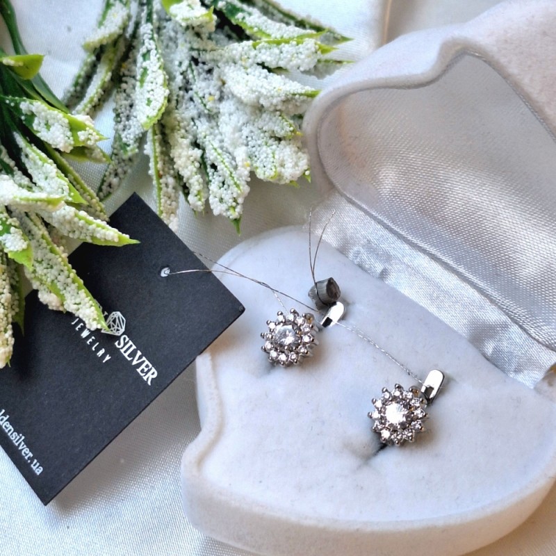 Нежные и романтичные серьги выполнены из серебра 925 пробы, украшены очаровательными