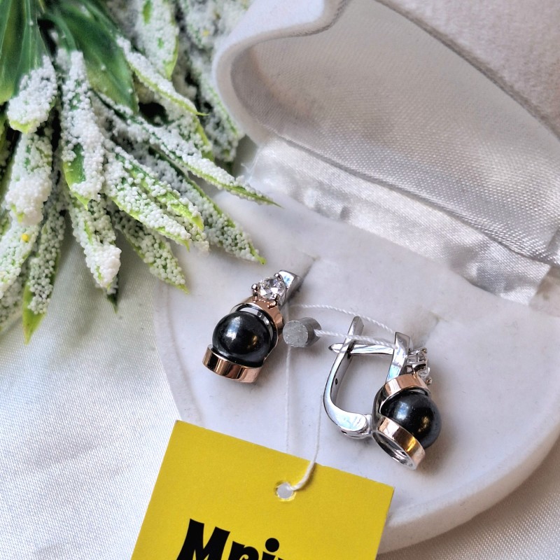 Zarte und romantische Ohrringe sind aus 925er Silber und 375er Gold gefertigt, verziert mit bezaubernden funkelnden Zirkonia und Hämatit! Diese Ohrringe strahlen Chic und Unwiderstehlichkeit aus. Mit ihnen werden Sie in jedem Outfit attraktiv sein!