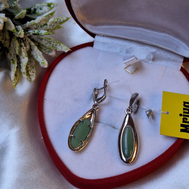 Ohrringe 925 Silber hängend Nephrit. Wunderschöne Ohrhänger aus 925er Sterlingsilber, verziert mit bezauberndem Nephrit! Solche Ohrringe strahlen Chic und Unwiderstehlichkeit aus. Mit ihnen werden Sie in jedem Outfit attraktiv sein! Rhodiniertes 925er Silber!