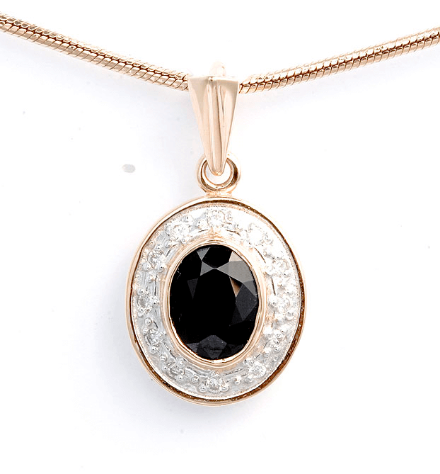 Eleganter Anhänger aus Rotgold mit Saphir und Diamanten.