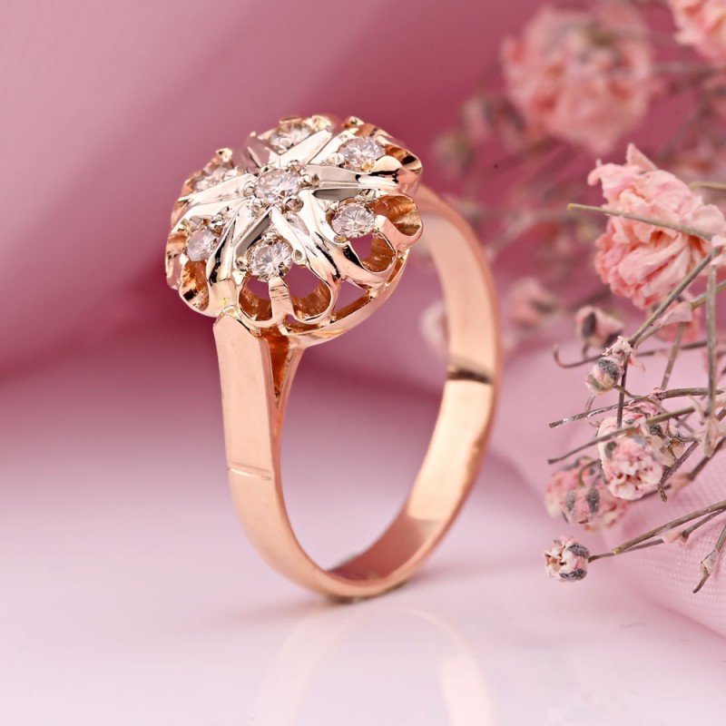 Goldring mit Diamanten Russisches Gold 583. Zierlicher, zarter Goldring für schöne weibliche Finger! Ring aus 583er