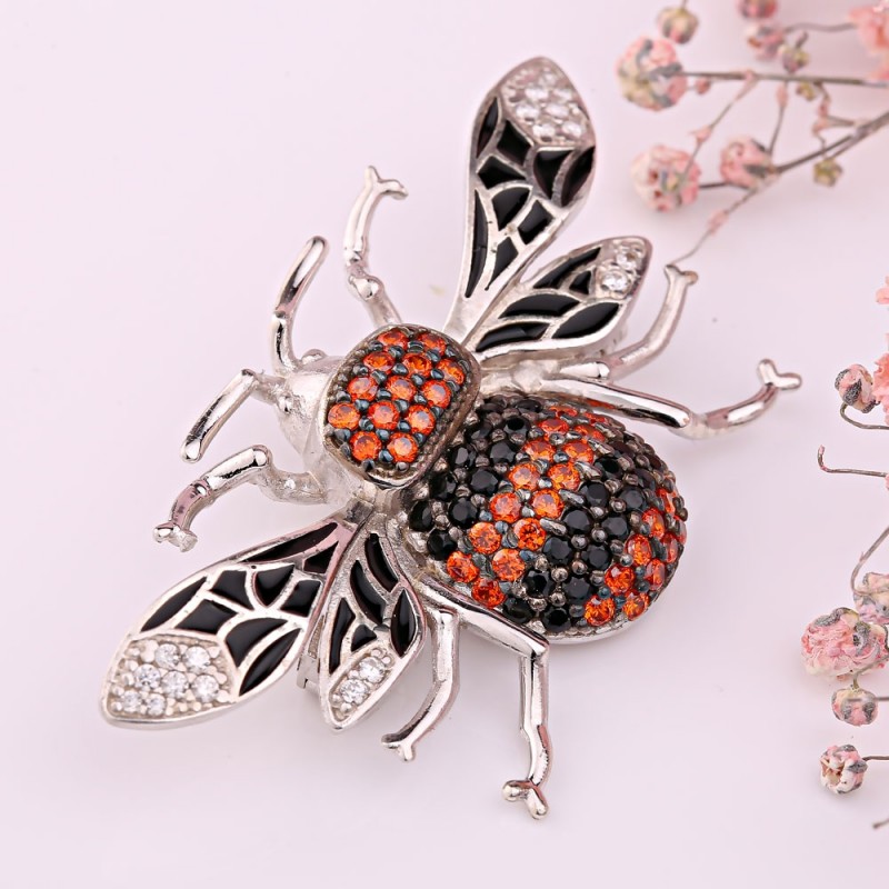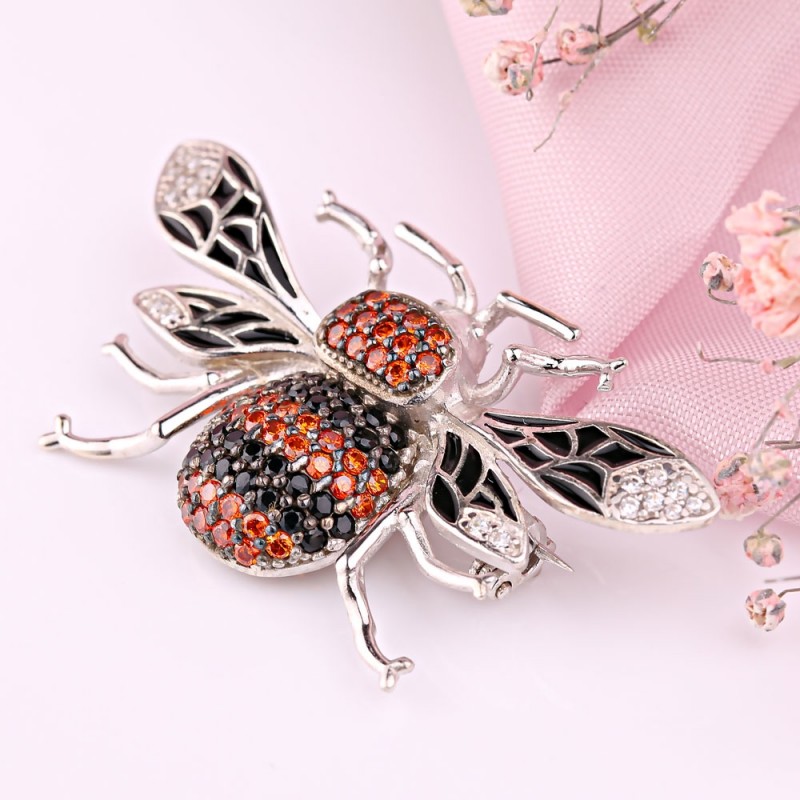 Silberbrosche mit Zirkonia. Rhodiniert! Bezaubernde Brosche aus 925er Silber, verziert mit funkelnden mehrfarbigen Zirkonia. Silberbroschen mit Zirkonia betonen nicht nur die Schönheit und Anmut ihrer Besitzerin, sondern sind auch eine wunderbare Ergänzung zu jedem Outfit. Diese Dekoration hat die Mission, ihrem Besitzer die hellsten und höchsten Gefühle zu vermitteln!