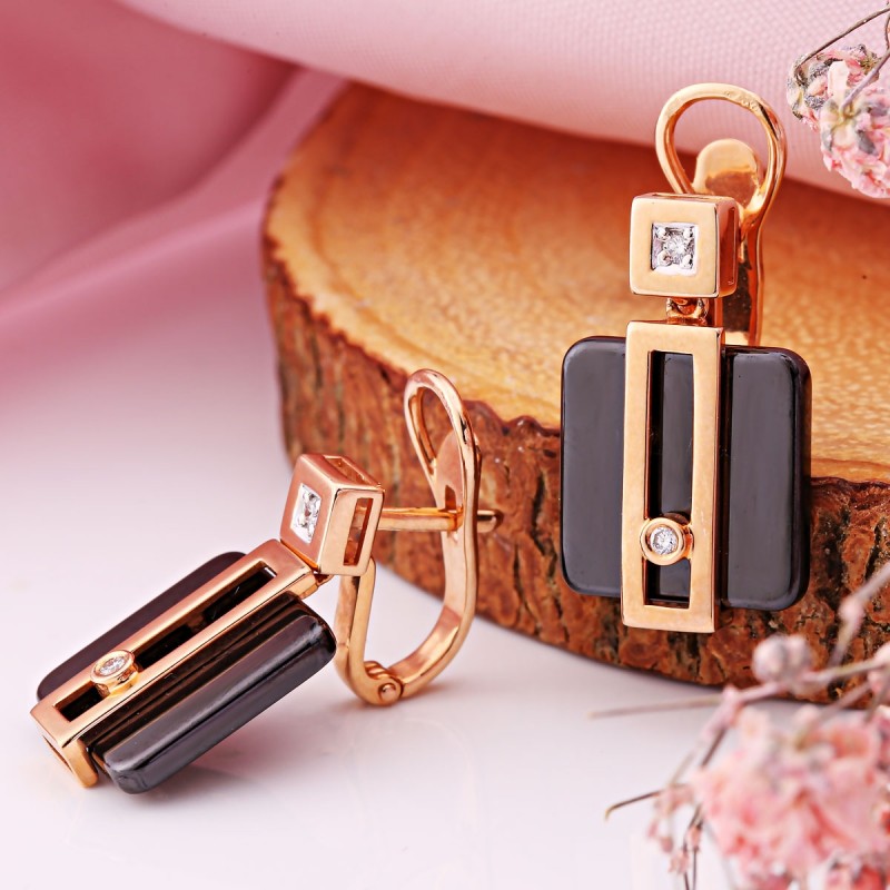 SOKOLOV Rotgold 585 Ohrhänger mit Diamanten Keramik. Rhodiniert! Anmutige, stilvolle Anhänger aus