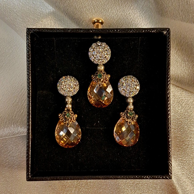 Einsatz: 1 Zitrin Tropfen 16.0 х 12.0 mm; Zirkonia Ø 2.0 mm; Smaragd Ø 2,0 mm