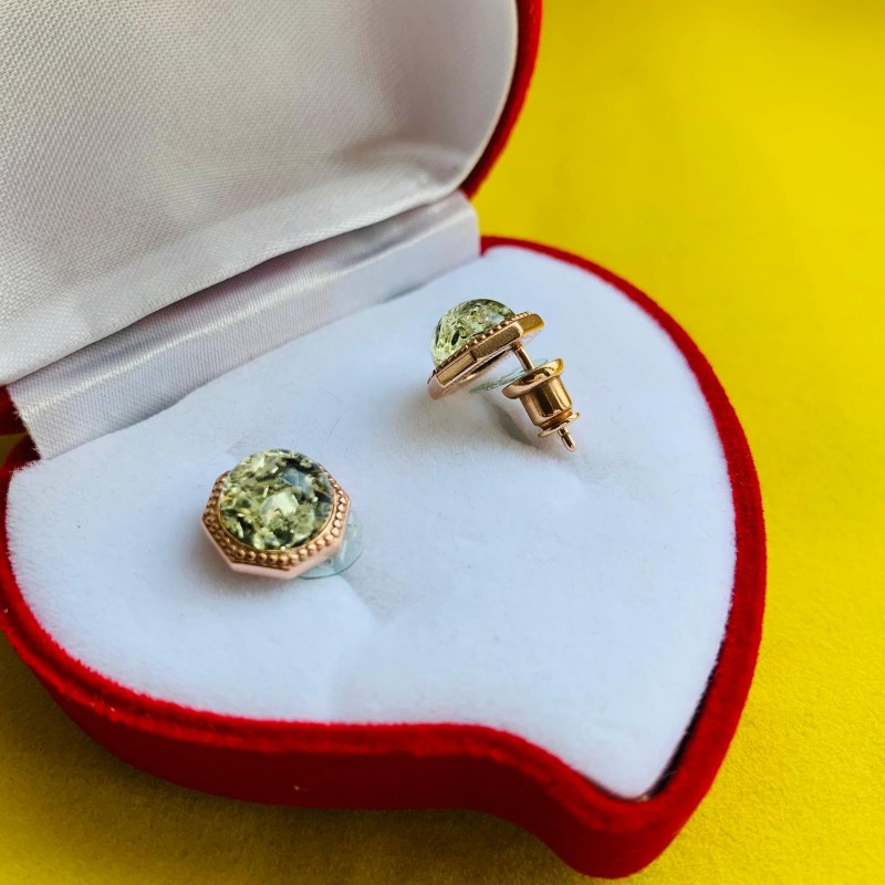 Vergoldete Silberohrstecker mit Bernstein. Wunderschöne Ohrstecker aus vergoldetem Silber 925 Probe, mit grünem Bernstein! Eine einzigartige Gelegenheit, Ihre Individualität zu betonen, das Bild von Weiblichkeit, Sonnenschein und Zärtlichkeit zu vermitteln.