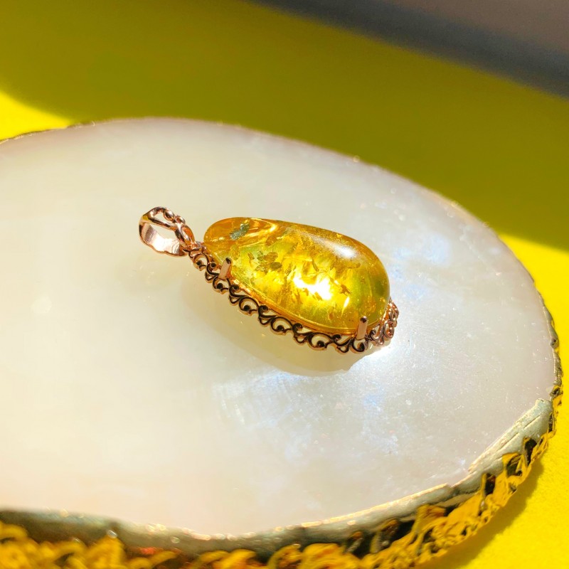 Einsatz: Honig-Bernstein. Diese einzigartige Bernsteinfarbe scheint vom Spiel der Sonnenstrahlen erfüllt zu sein. Der faszinierende Goldton des Steins sorgt für eine warme Note und dank seines stilvollen Designs wird dieses Schmuckstück immer in Mode sein. Gönnen Sie sich ein besonderes Geschenk, das Ihre Individualität unterstreicht und die Blicke anderer auf sich zieht und begeistert. Dieses außergewöhnliche Produkt wird Ihre Seele mit Harmonie und endlosem Optimismus erfüllen.