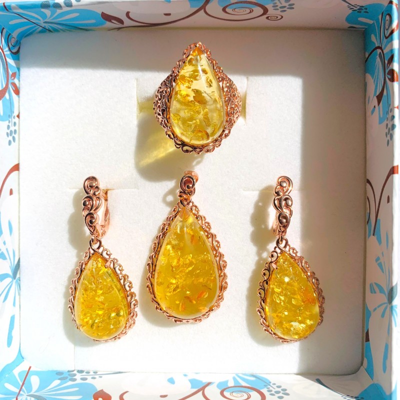 Einsatz: Bernstein wird von Meistern und Juwelieren sehr geschätzt. Dieses Mineral wird verarbeitet, daraus werden prächtige Kunstwerke hergestellt, die sowohl königlich luxuriös als auch mädchenhaft bescheiden sein können. Schmuck für eine Frau, die nicht gerne wie alle anderen ist und etwas Besonderes für sich selbst wählt.