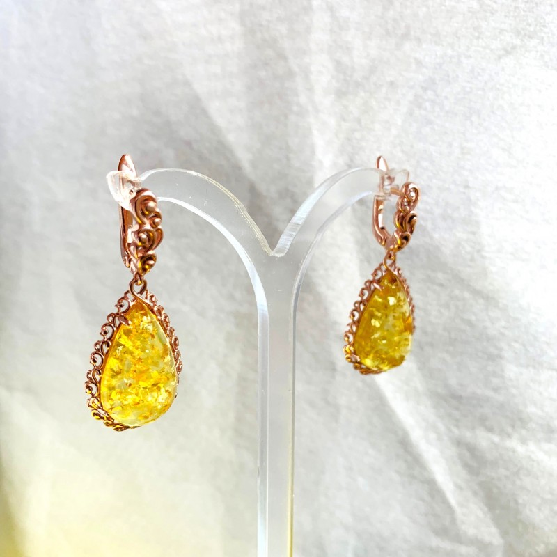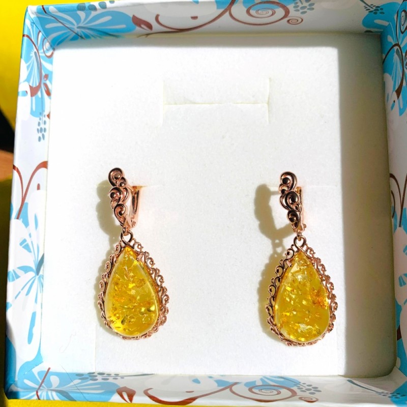 Vergoldete Silberohrhänger 925º mit Bernstein in Deutschland kaufen. Wunderschöne Ohrringe aus vergoldetem Silber 925 Probe, mit Bernstein in Honigtönen in Filigranumrandung! Eine einzigartige Gelegenheit, Ihre Individualität zu betonen, das Bild von Weiblichkeit, Sonnenschein und Zärtlichkeit zu vermitteln.