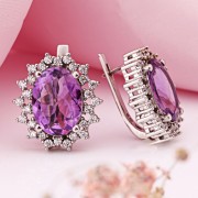 Silberohrringe 925º in Deutschland kaufen Zirkonia Amethyst. Silberohrringe mit großem Amethyst und wunderschönen funkelnden Zirkonia. Solche Ohrringe sind eine schöne Ergänzung zu jedem Outfit. Wunderschönes Geschenk für Ihre Geliebte, schenkt ihr unvergessliche Gefühle!