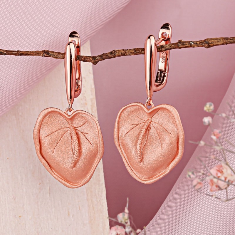 Vergoldete Ohrringe hängend. Wunderschöne Ohrhänger aus rotvergoldetem 925er Sterlingsilber, die jedem Outfit einen Hauch von Eleganz verleihen. Diese Ohrringe sind die perfekte Möglichkeit, Ihre Individualität zu unterstreichen und einen Look voller Weiblichkeit, Wärme und Zärtlichkeit zu schaffen.