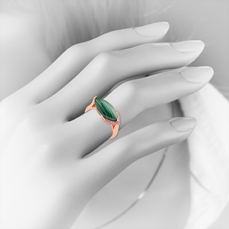 Einsatz: 1 Malachit 15,0 x 8,0 mm; Zirkonia Ø 1,0 mm