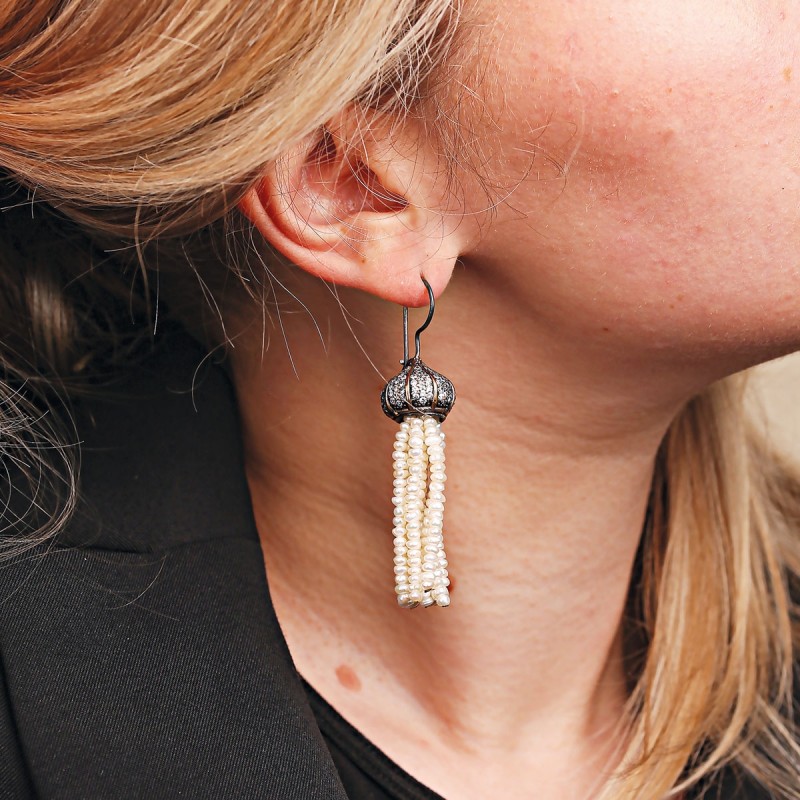 Perlenohrringe Silber. Geschwärzte und vergoldete Silberohrhänger mit wunderschönen Zirkonia und Zuchtperlen. Solche Ohrringe sind eine schöne Ergänzung in osmanischen Style. Wunderschönes Geschenk für Ihre Geliebte, schenkt ihr unvergessliche Gefühle!