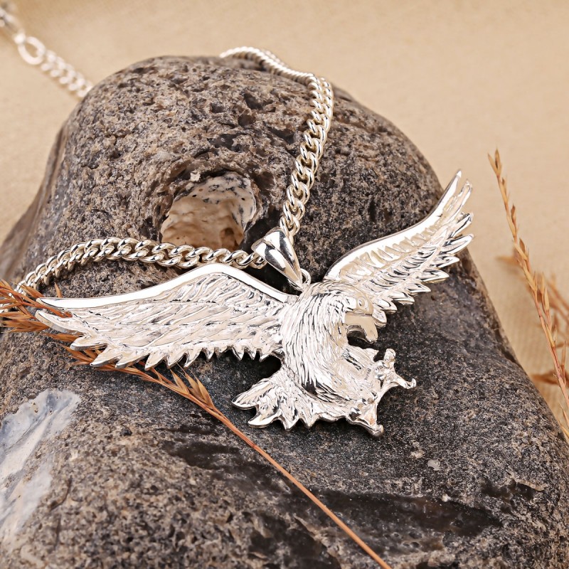 Dieser Anhänger aus 925er Sterlingsilber verkörpert die Majestät und Kraft des Adlers und symbolisiert Freiheit, Mut und Entschlossenheit. Der edle Glanz von hochwertigem Silber verleiht dem Schmuckstück Eleganz und Langlebigkeit, wodurch es sich sowohl für den täglichen Gebrauch als auch als stilvoller Blickfang eignet.