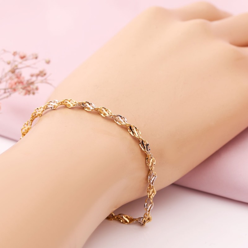 белое золото придаёт украшению благородство и современный акцент. В сочетании эти два оттенка создают гармоничный дуэт (биколор), который делает браслет универсальным и выразительным.
