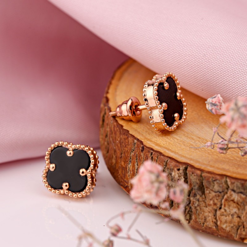 Rotgold und sind mit einem natürlichen schwarzen Onyx besetzt. Das warme, rötliche Gold bringt die Tiefe des dunklen Edelsteins perfekt zur Geltung und schafft einen spannenden Kontrast. Der Onyx zieht mit seinem geheimnisvollen Glanz die Blicke auf sich, während das