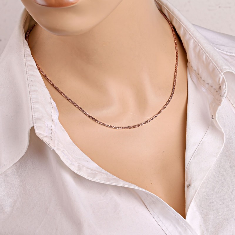 Goldkette Goldarmband 585. Luxuriöse Halskette oder Armband aus Rotgold 585 – ein Inbegriff von Eleganz, Weiblichkeit und exquisitem Stil. Das kunstvolle Ährenmuster mit quadratischem Querschnitt und die Diamantpolitur verleihen dem Schmuckstück eine atemberaubende Brillanz und Tiefe.