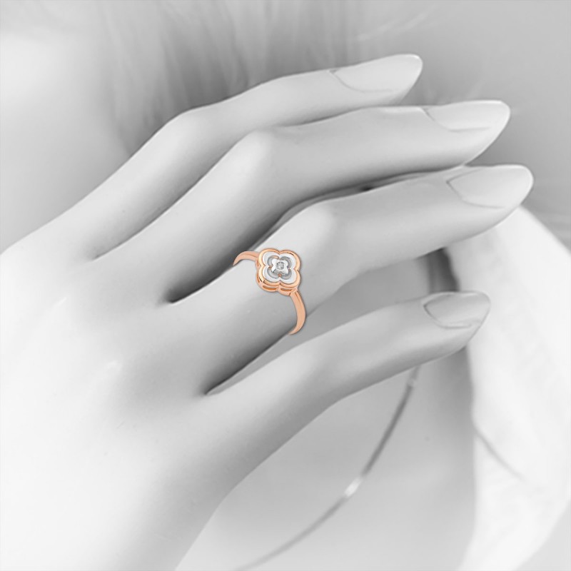 Rotgold – geschaffen für alle, die zeitlose Schönheit und feine Details schätzen. Das Herzstück des Rings bildet ein stilisiertes vierblättriges Blütenmotiv, das für Harmonie, feminine Leichtigkeit und Stilbewusstsein steht.