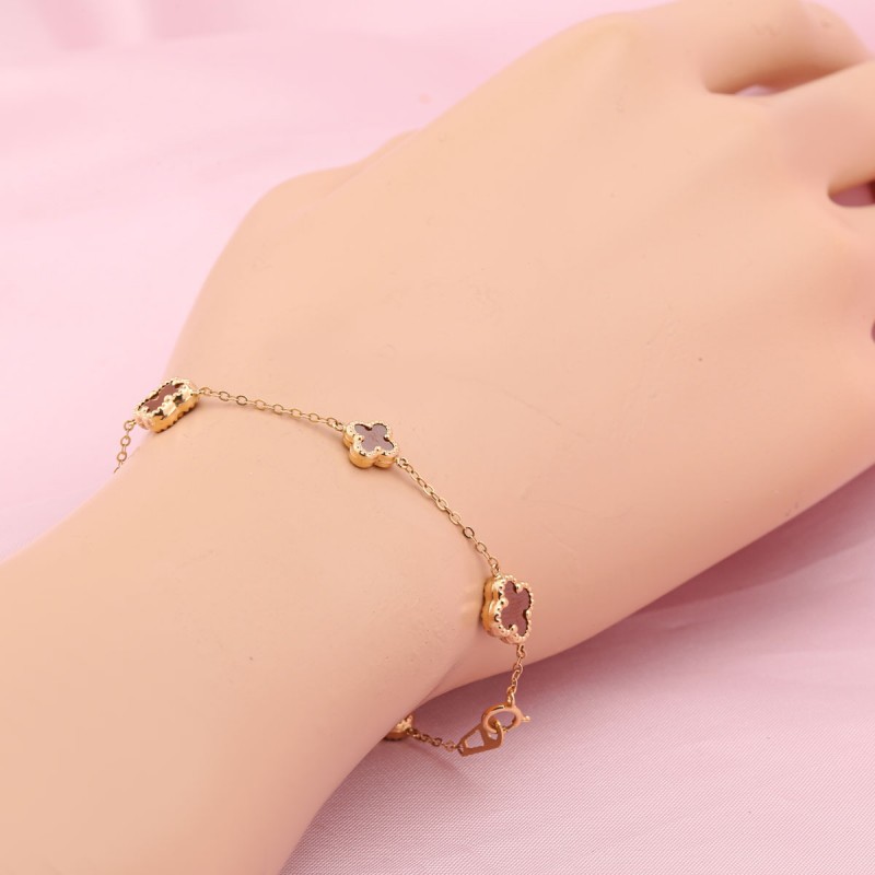 Goldarmband Gelbgold Achat. Armband aus Gelbgold mit braunem Achat. Dieses elegante Armband mit Einlagen aus braunem Achat vereint die natürliche Wärme des Steins mit dem edlen Glanz von Gelbgold. Die sanften Brauntöne des Achats erzeugen eine harmonische, ruhige Ausstrahlung, während die filigranen vierblättrigen Elemente dem Schmuckstück einen modernen und zugleich raffinierten Charakter verleihen.