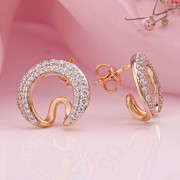 Rotgold bezaubern durch ihre geschwungene, kunstvolle Form, die an einen feinen, fließenden Pinselstrich erinnert. Zwei mit funkelnden Zirkonia besetzte Bögen, zusätzlich mit Rhodinierung veredelt, sorgen für einen strahlenden, kühlen Glanz, der das warme Gold perfekt kontrastiert. Das Zusammenspiel von Licht, Kurven und edlen Materialien verleiht dem Schmuckstück eine luxuriöse, romantische und zugleich moderne Ausstrahlung.