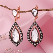 Besonders faszinierend sind die beweglich gefassten tropfenförmigen Zirkonia im Zentrum. Der Hauptstein ist frei aufgehängt und schwingt sanft mit jeder Bewegung mit, wodurch ein lebendiges, facettenreiches Funkeln entsteht. Das obere Tropfenelement greift die Form harmonisch auf und sorgt für eine ausgewogene Gesamtkomposition.