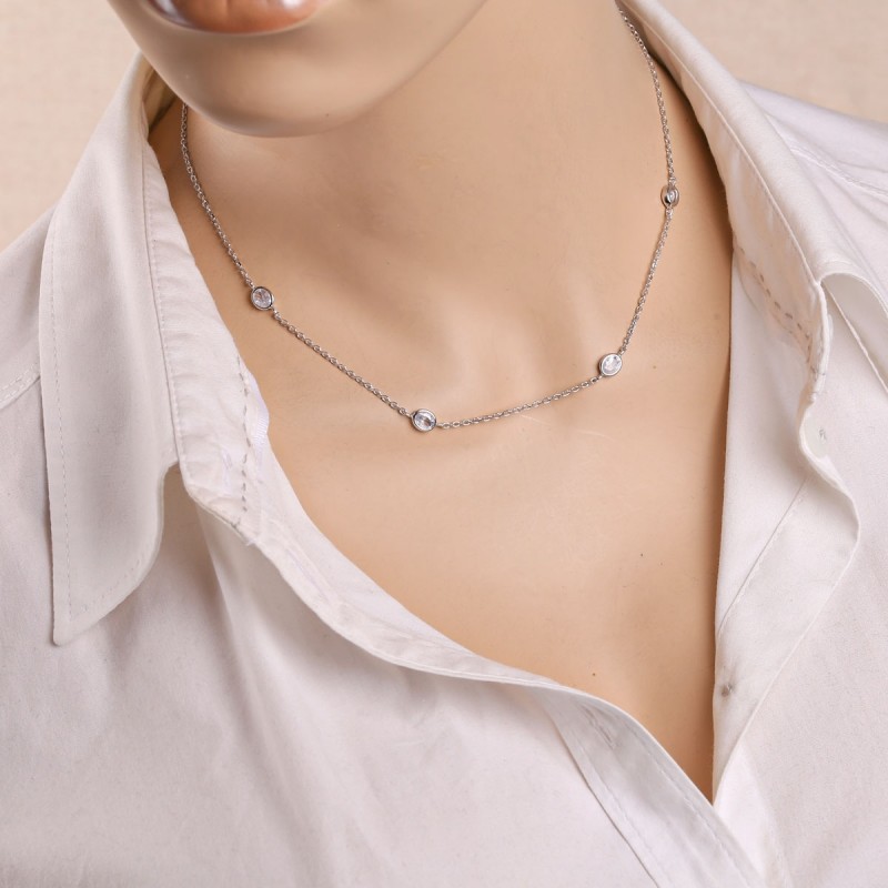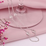 Die ovalen Steine sind harmonisch entlang der Kette angeordnet und verleihen dem Silber Collier mit Zirkonia eine elegante und feminine Ausstrahlung. Durch sein minimalistisches Design eignet sich das Schmuckstück sowohl für den Alltag als auch für besondere Anlässe.