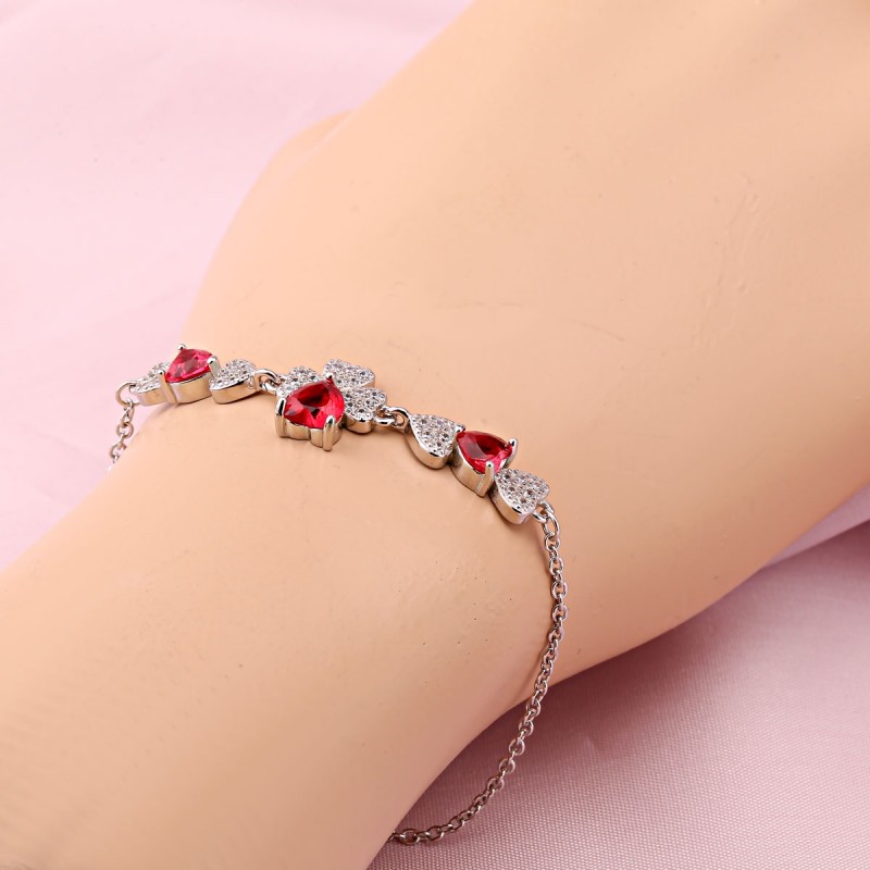 ► Die funkelnde Reihe aus Herzformen und roten Steinen macht dieses Armband zu einem eleganten und romantischen Blickfang!