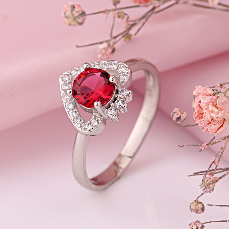 Damenring Silberring 925 kaufen. Dieses Ringdesign aus 925er Sterling Silber erzählt eine kleine Geschichte aus Form, Licht und Farbe. Im Mittelpunkt steht ein runder Zirkonia in intensivem Rubinrot, dessen tiefer Farbton sofort Aufmerksamkeit auf sich zieht.