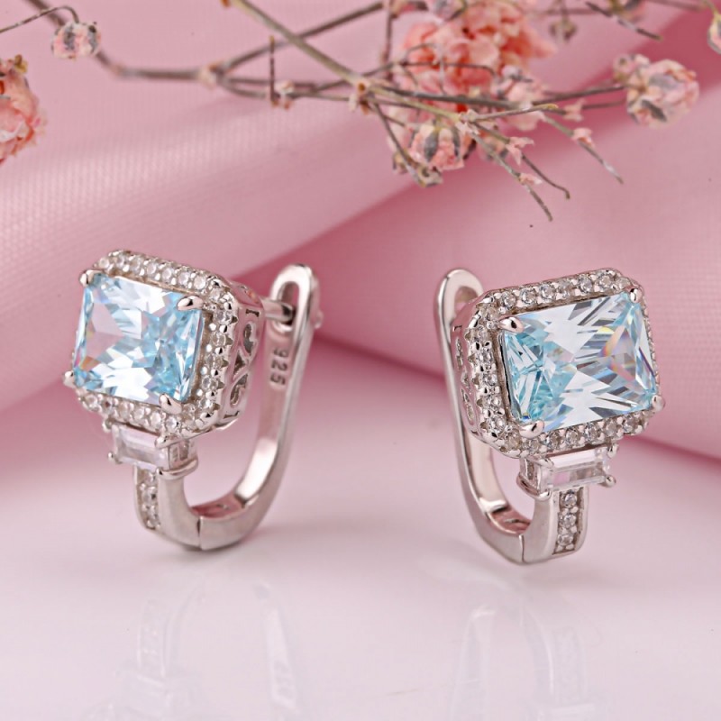 Im Mittelpunkt stehen rechteckige Zirkonia in zartem Blau, die in einem himmelblauen Farbton schimmern. Dieser Farbton erinnert an einen klaren Himmel und verleiht dem Schmuckstück eine leichte, frische Ausstrahlung.