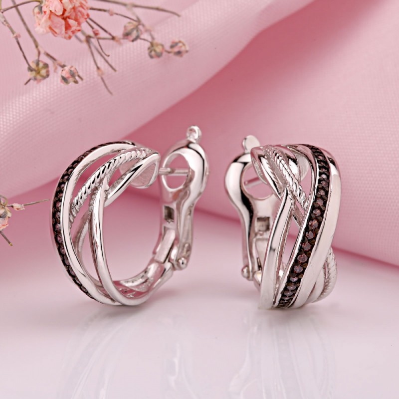 Silber 925 Ohrringe kaufen. Elegante Ohrringe aus 925 Silber mit schwarzen Zirkonia beeindrucken durch den stilvollen Kontrast zwischen glänzendem Silber und dem tiefen, geheimnisvollen Funkeln der Steine. Die geschwungenen Silberlinien verweben sich harmonisch miteinander und verleihen dem Schmuckstück eine moderne, dynamische Form.