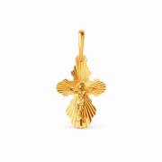 Rotgold 585 mit Korpus. Klassische Form mit strahlenförmig gravierter Oberfläche für verstärkten Lichtreflex und klare Struktur. Kompakte Größe eignet sich für den täglichen Gebrauch. Die Öse ist passend für Ketten unterschiedlicher Stärke ausgelegt.