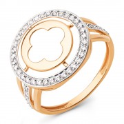 Rotgold, der durch seine mehrschichtige Form und den funkelnden Zirkonia-Besatz sofort ins Auge fällt. Das zentrale Element wird von einem strahlenden Kreis umrahmt und erzeugt ein beeindruckendes Spiel aus Licht und Tiefe.