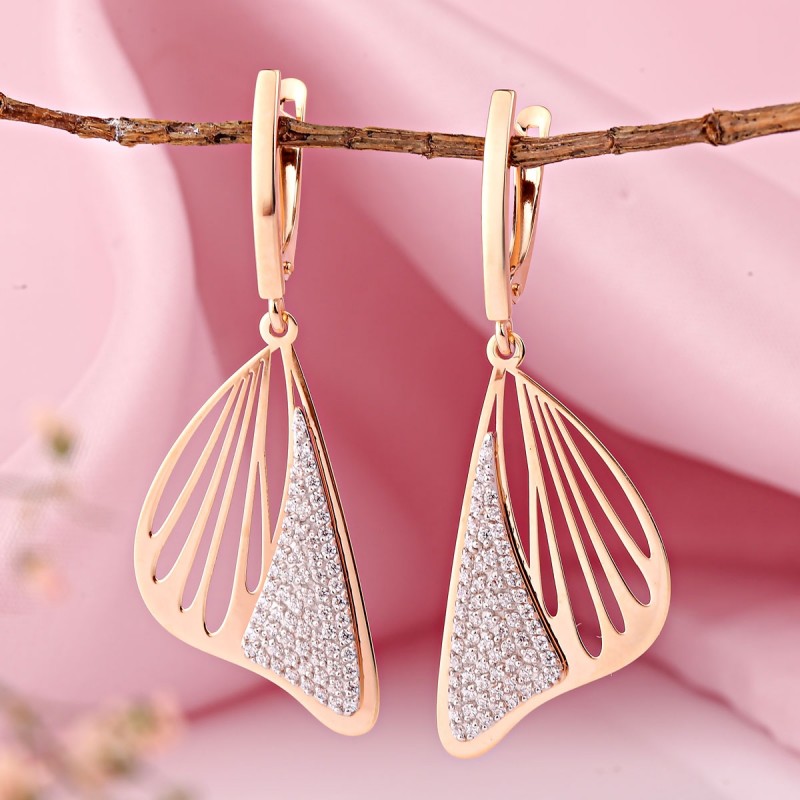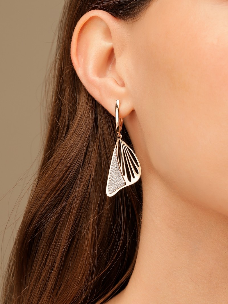 Rotgold wirken wie eine feine Komposition aus Form, Licht und Raum. Die filigrane, blattähnliche Silhouette entfaltet sich in sanften Linien und verleiht dem Schmuckstück eine elegante, fast schwebende Leichtigkeit.