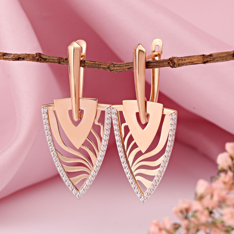Rotgold faszinieren durch ihre markante, geometrische Form. Die spitz zulaufende Silhouette wirkt klar und kraftvoll, während sie gleichzeitig eine elegante Leichtigkeit bewahrt.